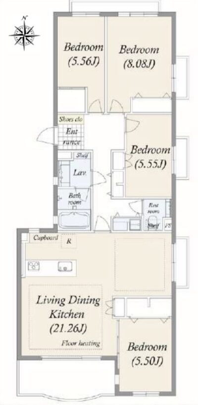 さらに、陽光がたっぷりと差し込む南向きの3方角部屋で 、明るさと開放感に満ちた暮らしを実現します。