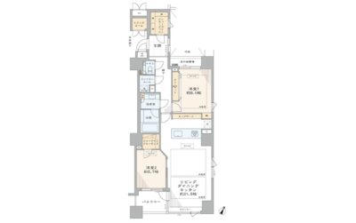 ゆとりある89.31㎡の2LDK。各居室や収納が広く設計されています。